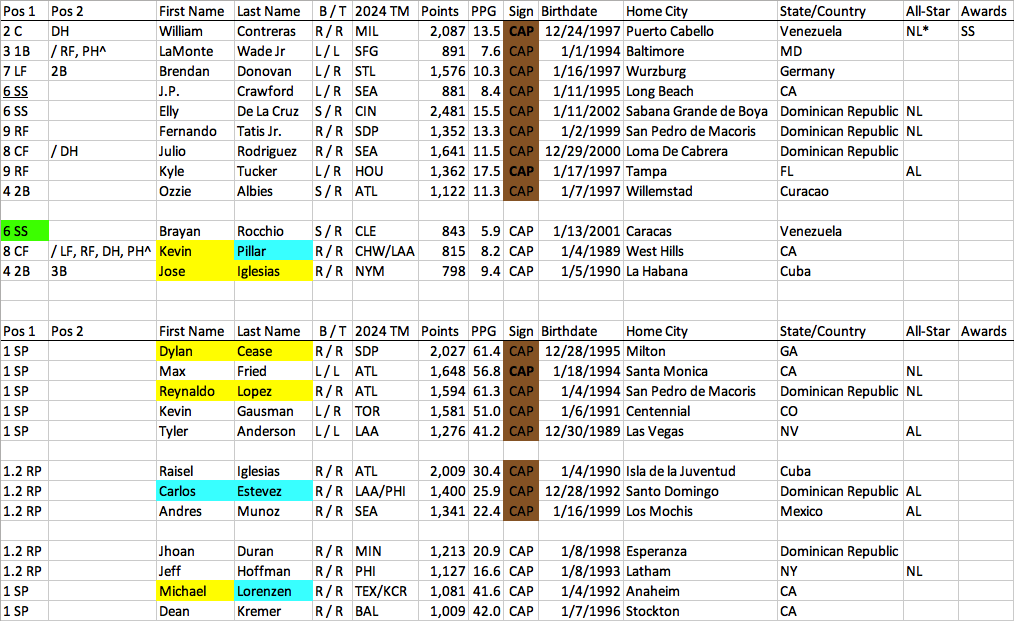 Here’s an overview of the 2024 FABL season, plus lineups (and pitching rotations) for all 12 teams.