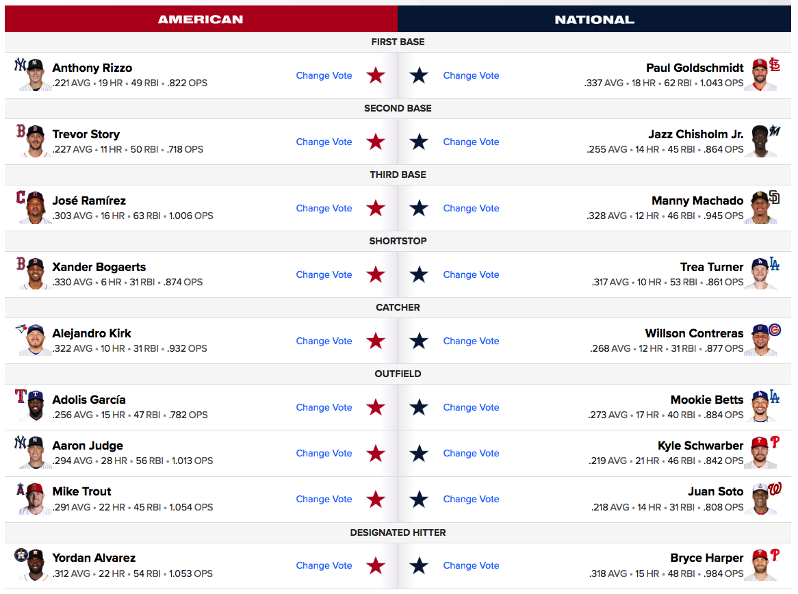 With a stolen US Supreme Court handing down a bullshit decision on Friday, setting back reproductive rights in this country by 50 years, it’s been one of the worst Cancer seasons in recent memory. After a weekend of protesting, marching, and donating to abortion funds, I’m taking a moment to appreciate one of the perennial treats of Cancer season: MLB All-Star Voting.